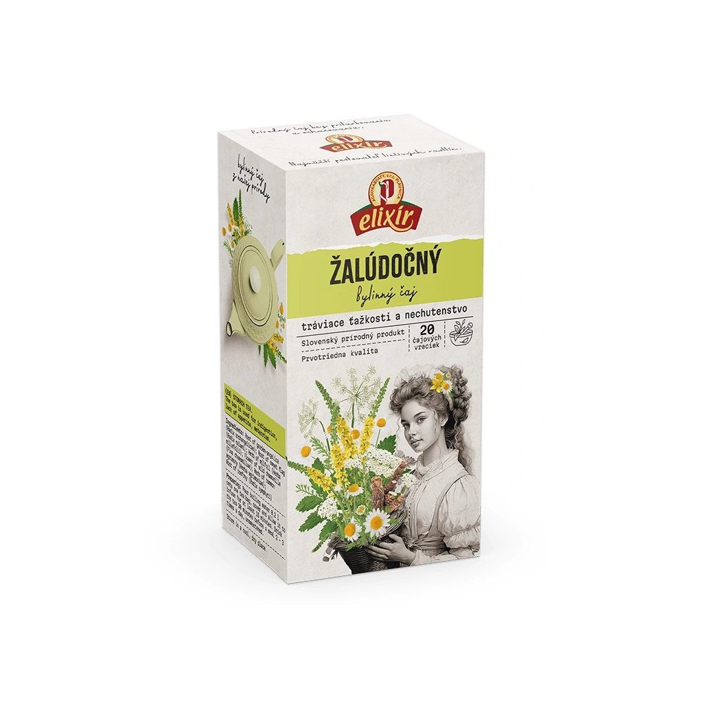 Obsahuje puškvorec obecný, anděliku lékařskou, řebříček obecný, heřmánek pravý, kostival lékařský a řepík lékařský – byliny, které se v lidových receptech využívají pro podporu zažívací pohody. Čaj je ideální k podávání před jídlem nebo po těžším pokrmu.