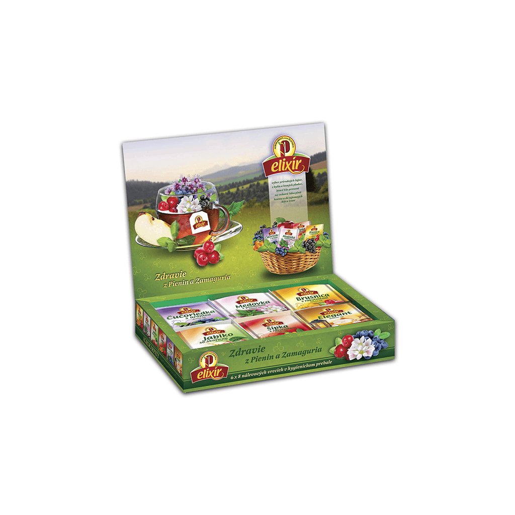 TIP: Každý den si dopřej jinou chuť – ovocnou, bylinnou nebo svěží. Elixír ovocný mix je dárková kazeta, která potěší každého milovníka čaje a přírody.