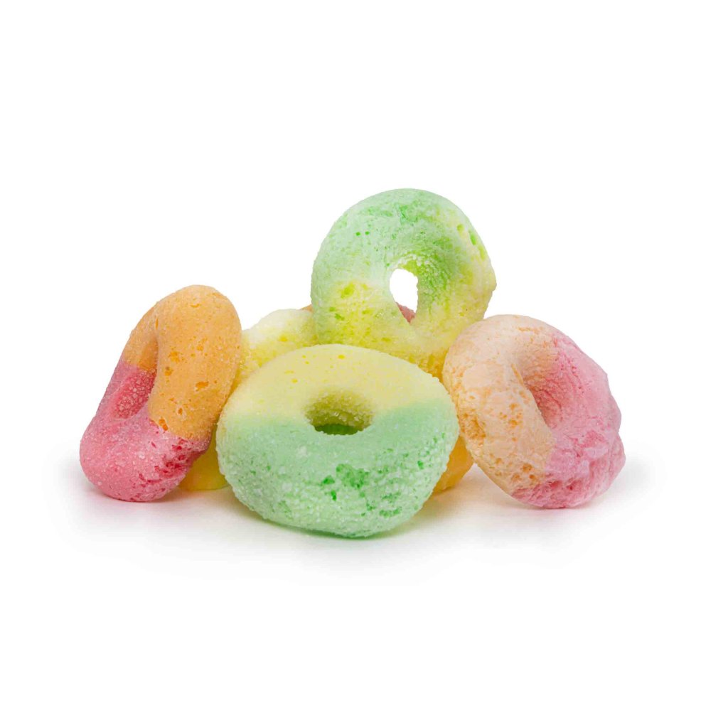 TIP: Tyto kroužky jsou nejen chutné, ale i fotogenické! Použij je k ozdobení dortu, zmrzlinového poháru, nebo si z nich udělej zábavný jedlý "řetěz". Pokud hledáš další tvary, určitě vyzkoušej i naše Želé červíky - sušené mrazem.